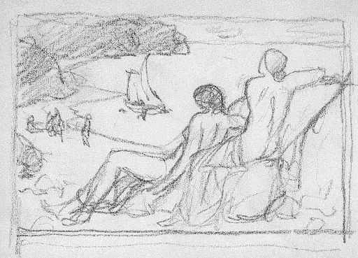 ![]() T. F. Šimon: "Deux Filles à la Mer", dessin à la mine de plomb sur papier 165 x 115 mm
