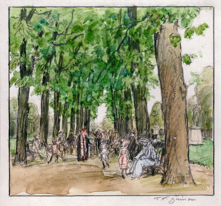 ![]() T.F. Šimon: "Parc du Luxembourg, Paris", ca 1910 crayon et aquarelle sur papier; 14,5x13,5 cm |