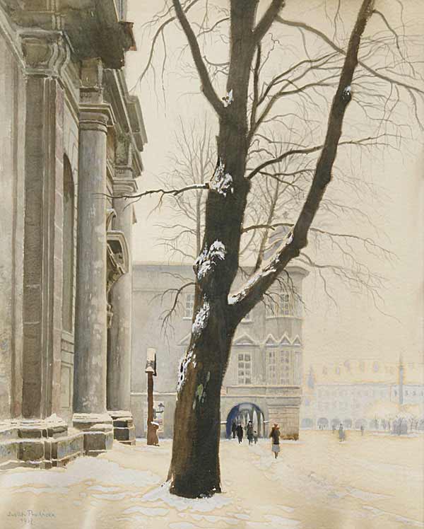 ![]() Procházka Jindřich (*Nové Město nad Metují 1888): "Sankt Jakob in Gitschin", signiert und datiert Jindřich Procházka 1937, Aquarelle Gouache/Papier, 78 x 63 cm. |