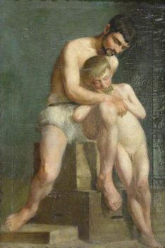 Akt mit Knaben. Signiert unten links: J. Heson.