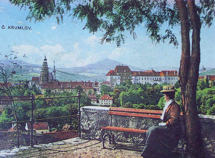 Ansicht "Krummau an der Moldau - Bellaria im Hofgarten", 1912. |