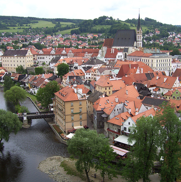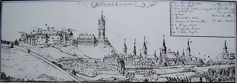malerische Stadt Krummau an der Moldau. Im Deutschen auch Böhmisch Krummau, oder Krumau, im Tschechischen Česky Krumlov. Ihre Geschichte beginnt im 13. Jahrhundert, wo das Geschlecht von Vitkovici eine Burg gründet. Als Gründer wird Vitek angeführt, wobei der 1253 seinem Namen die Bezeichnung "z Krumlova - von Krumau" angeschlossen hat. Fast zur gleichen Zeit entsteht auch die Vorburg - Latrán (Latron), die vorwiegend von Handwerken und Burgbediensteten bewohnt wurde. In der 2. Hälfte des 13. Jhs. gründen die Vitkovci unterhalb der Burg eine Stadt. 1475 erwarb Krummau das Schürfrecht, und in der Umgebung der Stadt wurden Silbererzgruben eröffnet. Diese Ereignis verursachte auch die Veränderung der Nationalitätenstruktur der Bevölkerung, denn es wurden deutschen Bergleute lutheranischen Bekenntnisses herberufen. |
