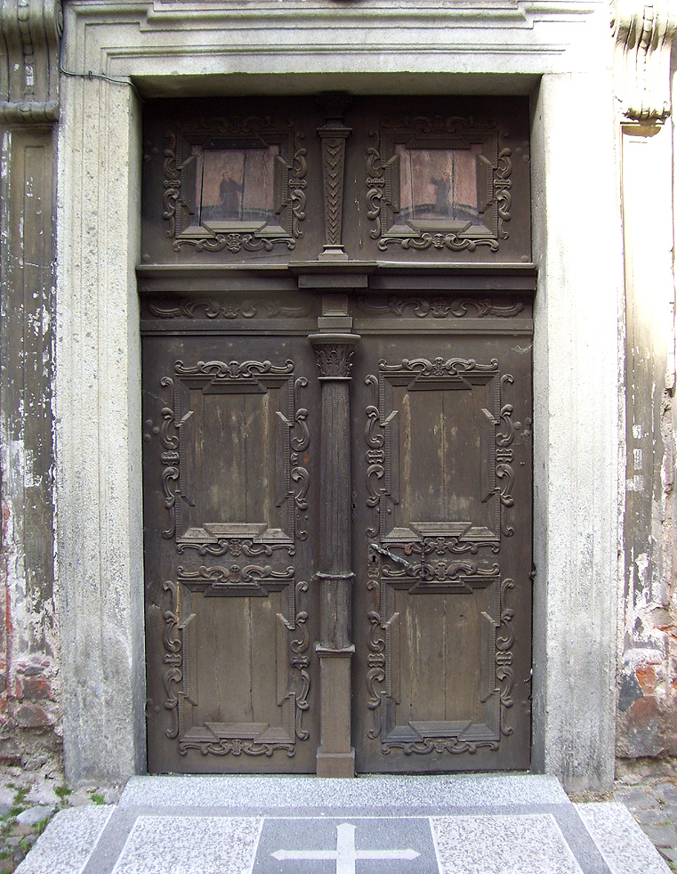 Die Haupttür der Maria Schmerzensmutterkirche. |