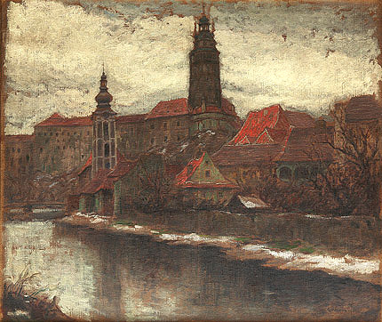 ![]() Gustav Macoun (1892-1934): "Česky Krumlov", Öl auf Leinen, 100x110 cm. |