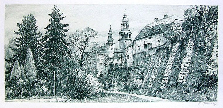 ![]() August Hahn (1815-1894): "Krumau/Krumlov", Steindruck, 193x266 mm. |