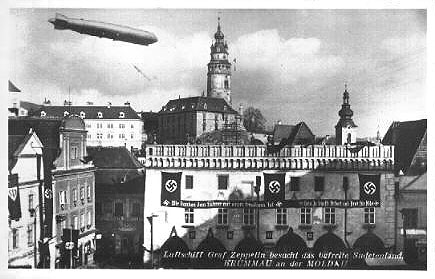 ![]() Ansicht: "Luftschiff Graf Zeppelin besucht das befreite Sudetenland, Krummau an der Moldau", 1938. |