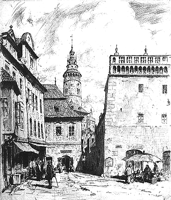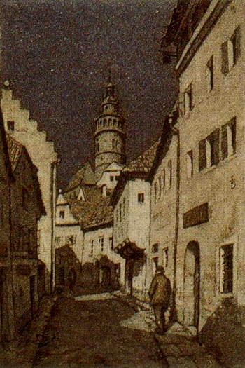 ![]() T. F. Šimon: "Krummau - Motiv", Novak 229. Radierung, 1914. |