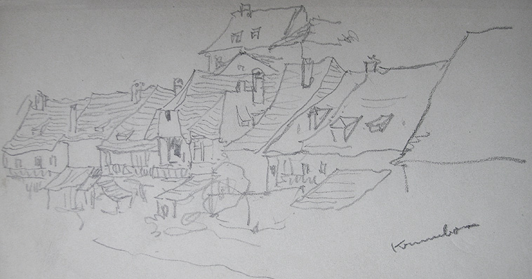 T. F. Šimon: "Krumlov", 1913, Bleistift, 18x11 cm. |