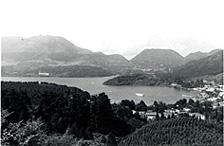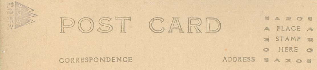 Front: small fold in left corner. Back: no handwriting. Preprinted: see below with a mark with Chinese/Japanese characters. We recieved an e-mail from a visitor from Japan, who kindly informed us the location. Hakone in Japan; Lake Ashinoko |