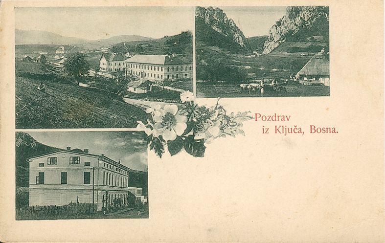 Kluca, Bosna." Back: no handwriting. Preprinted text: "Correspondenz-Karte. Dopisnica." Slight fold in the right corner and some spots. |
