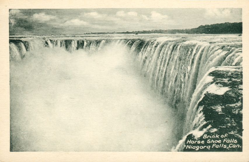 Shoe Falls Niagara Falls, Can." Back: no handwriting. Preprinted "Post Card", right "The Address to be written here" and a mark with "Made in Canada" (see below) and left "This space may be used for Communication" and "Photogelatine Engraving Co. Ltd., Ottawa". |