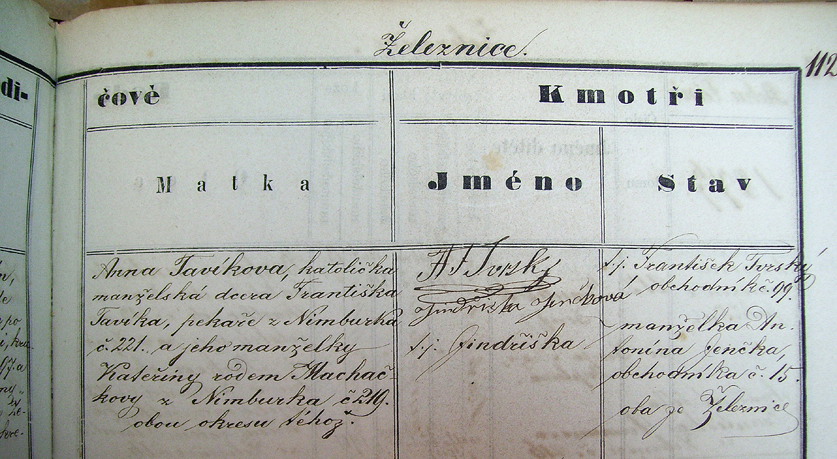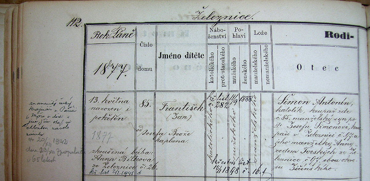 (1877-1942): Jan Tavik x Frantika Puchler Josef Machakov x Katerina Tiler + Vaclav imon x Barbora Kvapil Jozef Tvorsky x Veronika Lacy(?) Grandparents