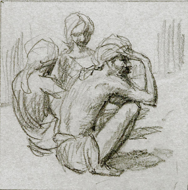 Mother and child, ink, 128x83mm ![]() Woman and child. Washed Indian-ink. Monogram TFS. |