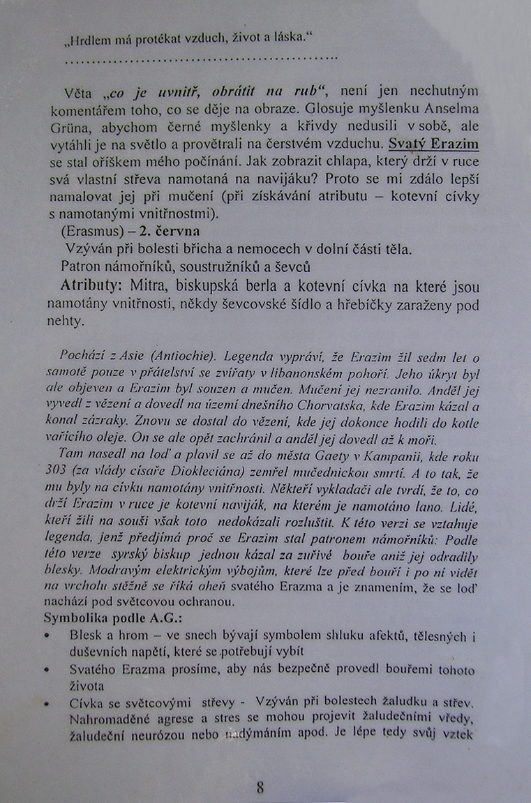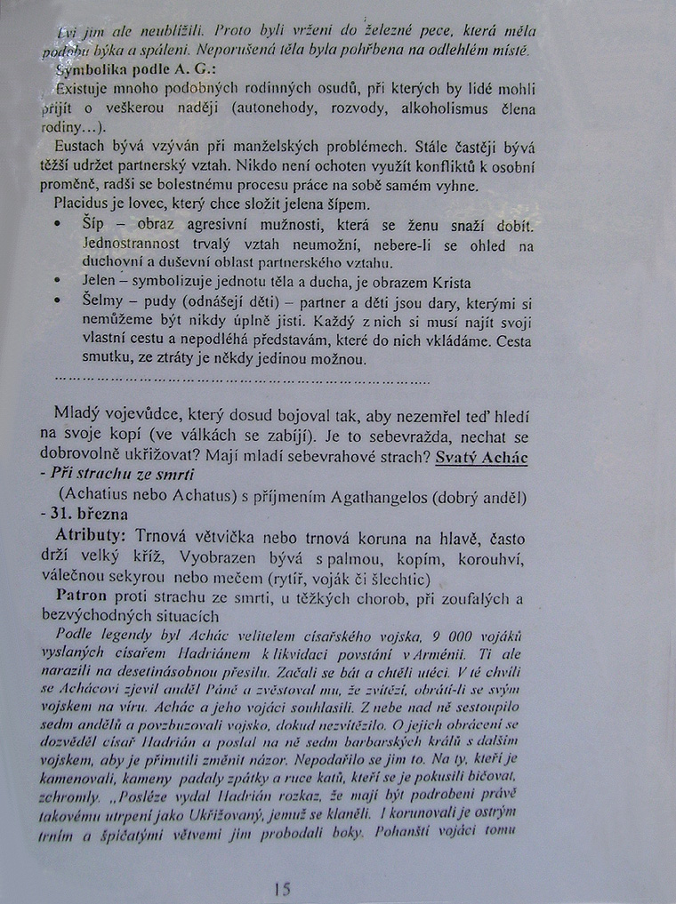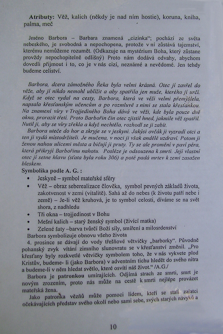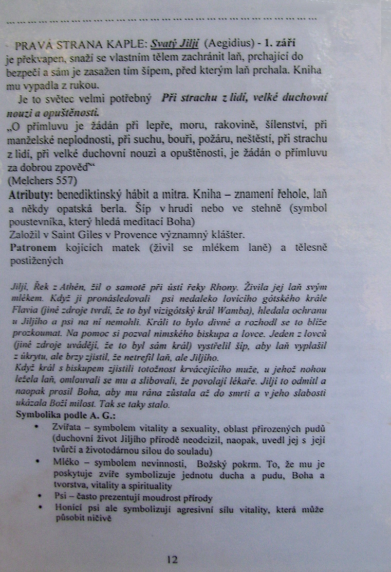 interessant ist, zeigen wir einige Fotos. An dem Gitter hängt ein Heft worin die Symbole, Attribute und Geschichte der Heiligen